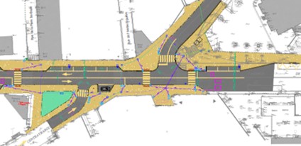 Aménagement du carrefour pour le rendre plus agréable pour les piétons et verdir les abords.