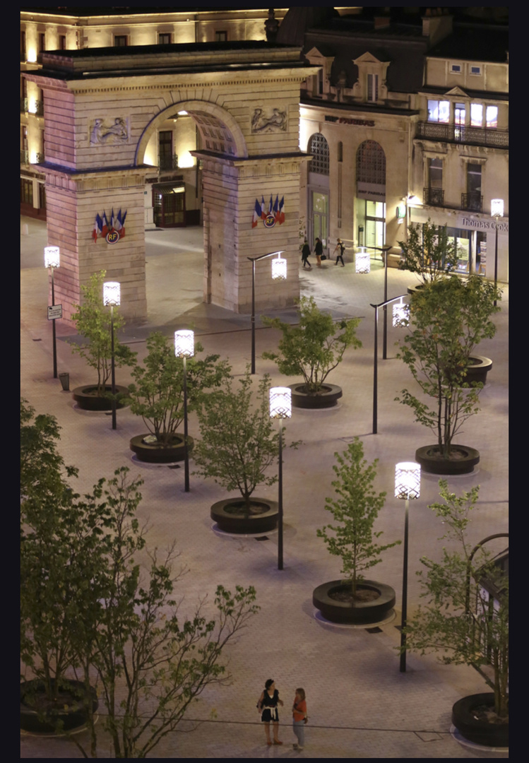 Des fontaines et des bacs à fleur (Vases d'Anduze) ainsi que des ombrières en atténueraient la chaleur en été.