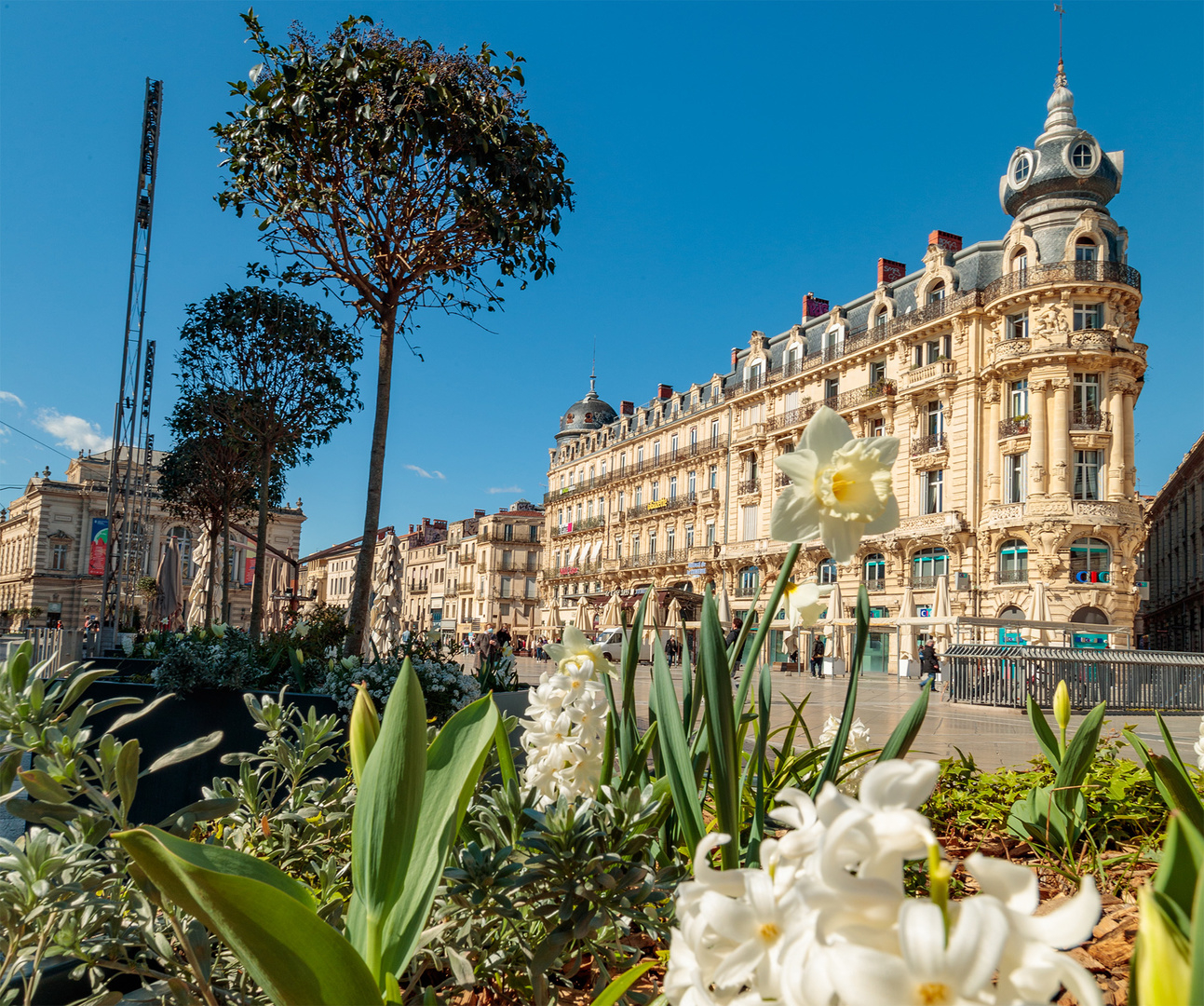 Avec des températures avoisinant désormais 45° l’été, il devient indispensable d’offrir à la Comédie, lieu de passages, de rencontres et de fêtes, de la fraîcheur, des espaces arborés et ombragés.
